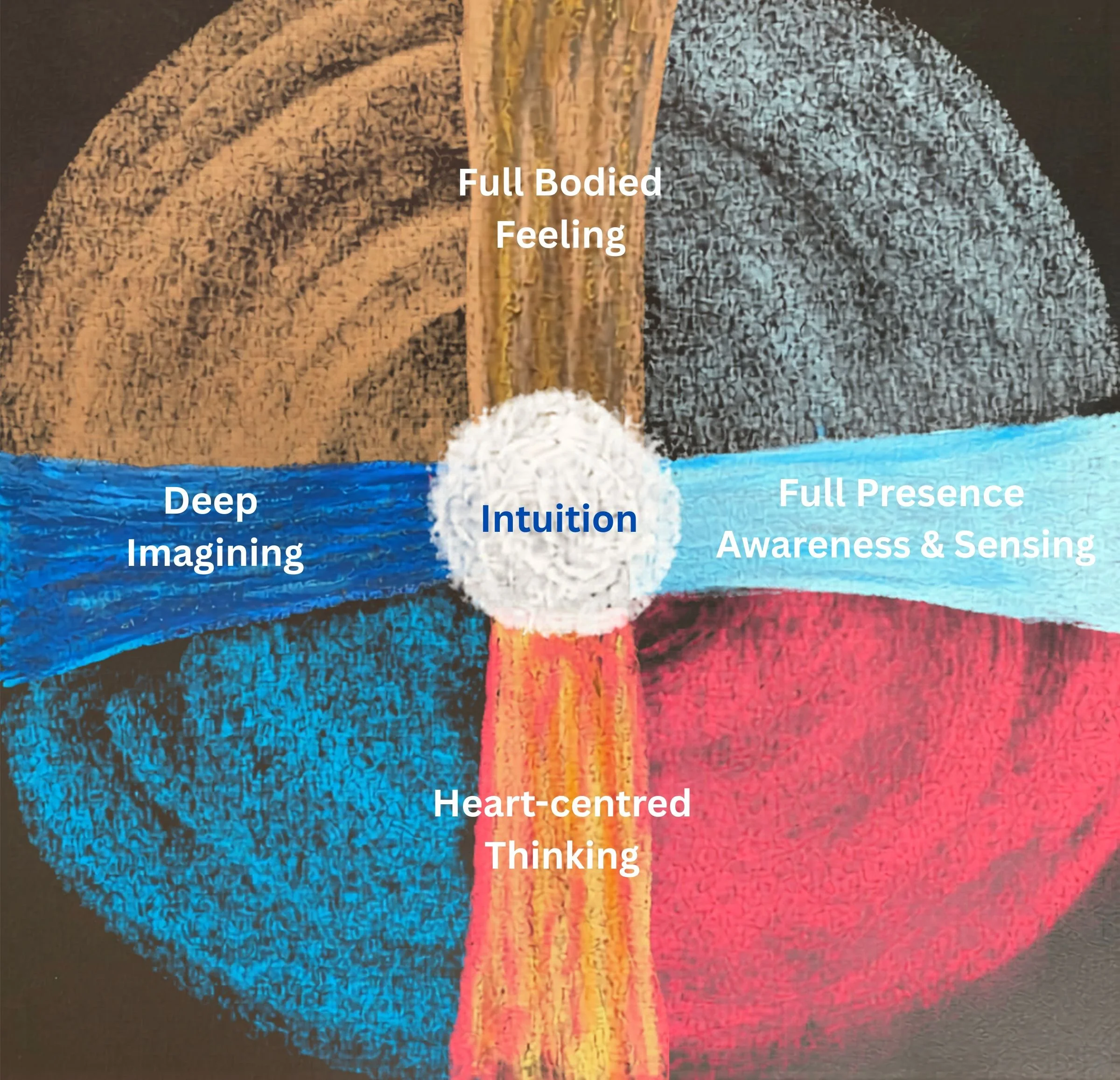 Whilst these four portals of knowing are distinct, the full potency of each is only revealed when we can access all of them, flowing through each portal, each portal informing other portals, moment by moment, in a fluid synthesis of our wondrous capacity to feel, sense, imagine, think, intuit and be. Intuition can help us weave the threads of our multi-faceted knowing, to reveal the wisdom of our own soul and the wisdom of the web of life all around us.