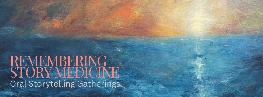 Remembering Story Medicine is an evening of myth and folktales told in an old oral storytelling way. The evenings begin with a shared meal, where we meet and mingle and have the chance to form new connections, making new kin. Then we gather in the main space to hear the stories, and to speak aloud where we have been located by them, where our hearts have become resonant or stuck, inspired or unlocked.